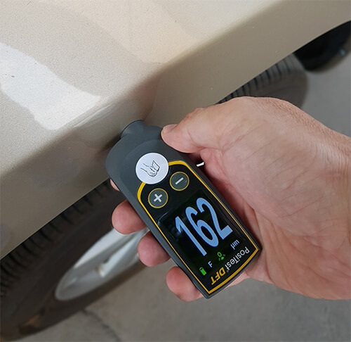 Автомобильный толщиномер PosiTest DFT F измеряет толщину краски только на ферромагнитных материалах, включая панели кузова, детали двигателя и стальные колесные диски. Автомобильный толщиномер PosiTest DFT F это профессиональный инструмент для измерения толщины лакокрасочного покрытия (толщины лкп) автомобилей на кузовах автомобилей изготовленных из различных марок сталей.