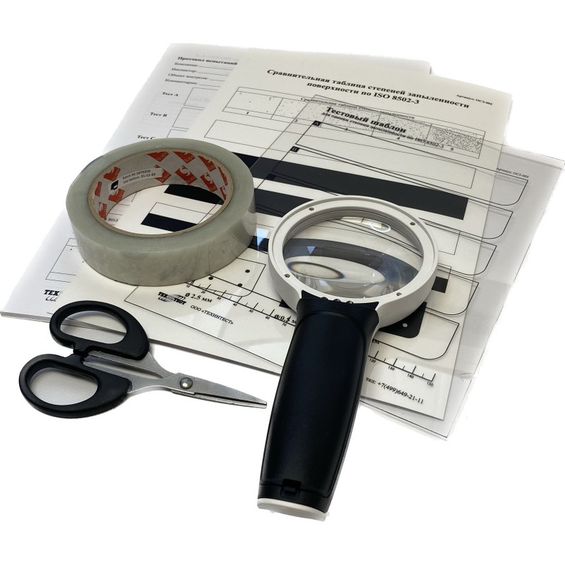 Набор для оценки степени запыленности поверхности ОСЗ-8502 (далее набор) предназначен для оценки количества и размера частиц пыли на стальных поверхностях, подготовленных к нанесению защитных покрытий (окраске). Пыль на очищенной поверхности может уменьшить адгезию покрытия, что приведет к преждевременному разрушению защитного покрытия. Данный набор используется в соответствии с рекомендациями ISO 8502-3 в качестве теста по методу “годен/не годен”, или для перманентной регистрации степени запыленности.